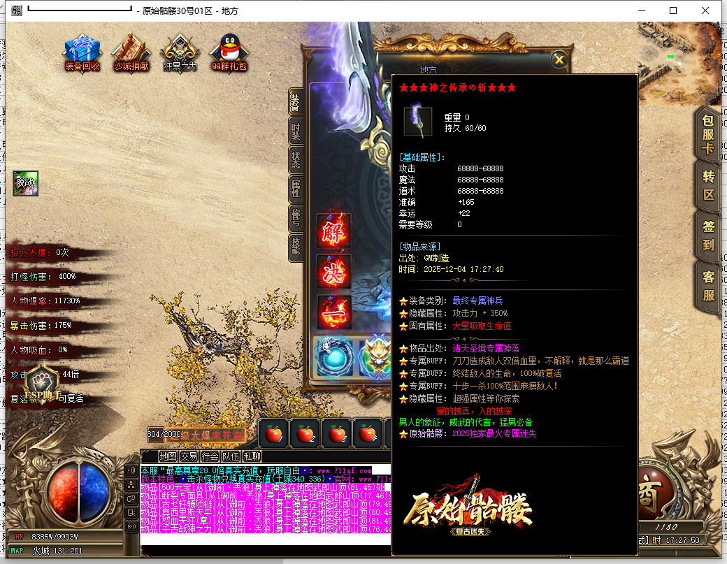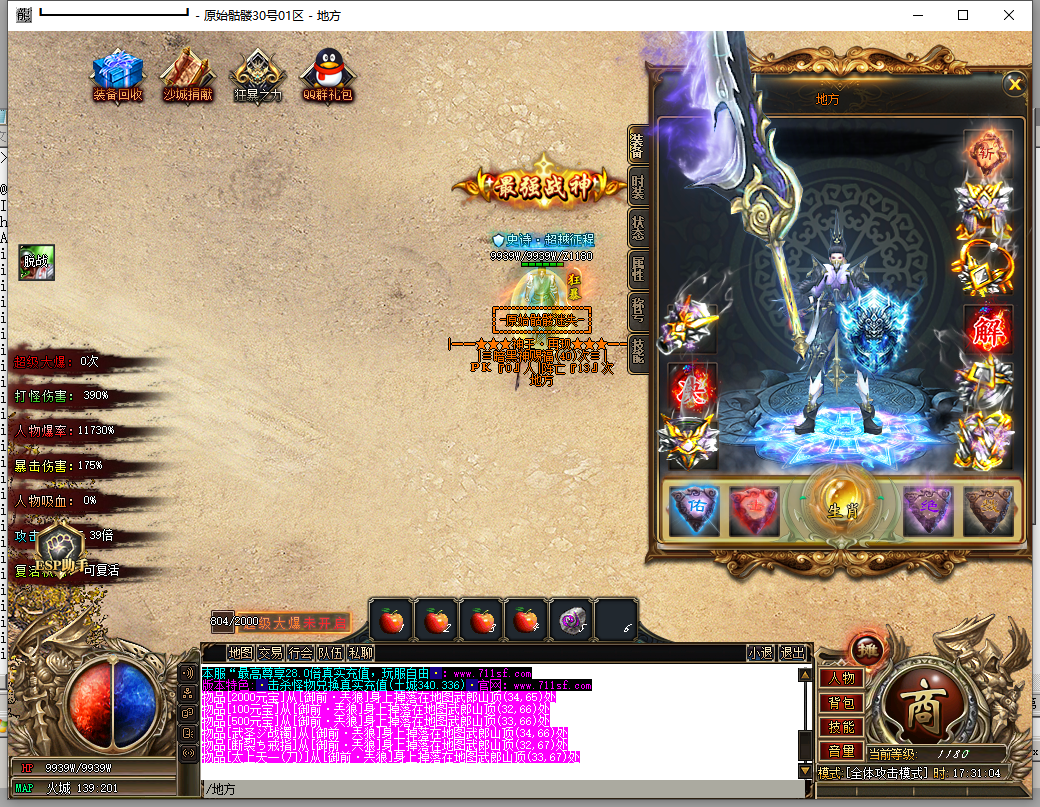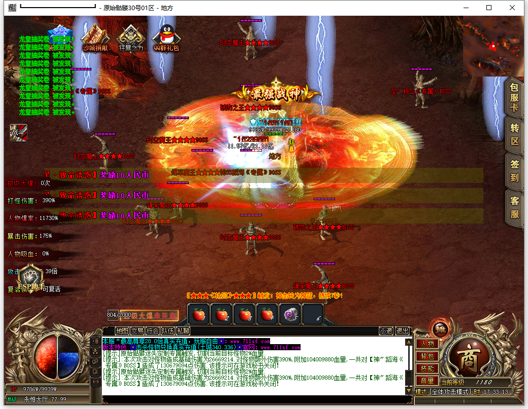 - 【版本说明】: 上线就送MAX刀速+双倍爆率提升.装备嗷嗷全爆.人人土豪装逼又激情!